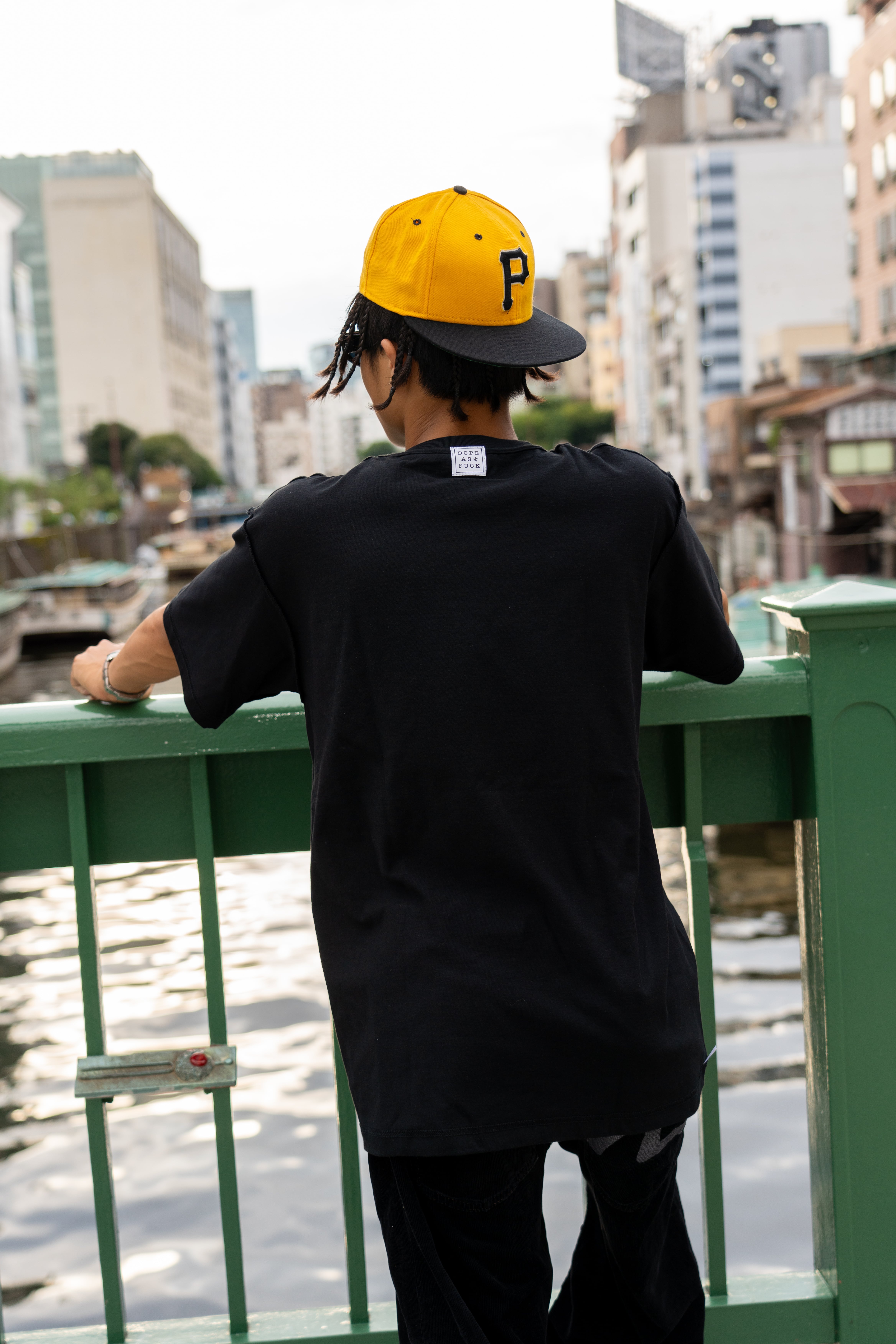 わざと裏記事にデザインを施し、タグを出しながら着用する最新型DAF TEE。T-shirtsを裏返すと無地BlackTEEに変わる。